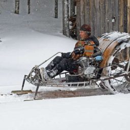 Пенсионер из российской глубинки сконструировал необычный снегоход. На аппарат, собранный из металлолома, он установи двигатель от старого мотоцикла. Энтузиаст уверяет, что, не смотря на громоздкость конструкции, транспортное средство получилось очень удобным.