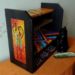 Нашлась у меня в завалах старая-престарая полка! Решила превратить ее в африканскую. Люблю я этот стиль. Мне нравится сочетание цветов и насыщенные краски, которые используют африканцы. У них не повторяется орнамент в одежде, и все цвета подобраны с большим вкусом.