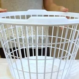 Для повторения этой идеи вам понадобится любая пластиковая корзина. Лучше, если она будет с отверстиями: тогда у готовой поделки получится интересный узор!