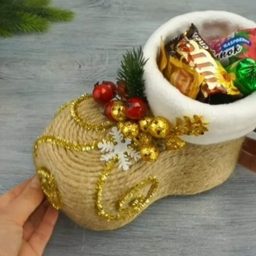 Забирайте эту отличную идею из бутылки и скорее реализуйте в ближайшее время! Из простой пластиковой бутылки — очаровательный рождественский сапожок, который можно наполнить конфетами. Смотрится он просто потрясающе и непременно станет ярким декором наступающего года!