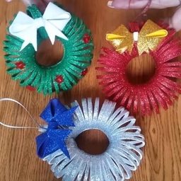 Создать столь милую ёлочную игрушку точно по силам ребёнку! Делается буквально за пару минут: лёгкая, блестящая, яркая игрушка станет прекрасным украшением ёлки. Понадобится всего 1 материал, не считая клей!