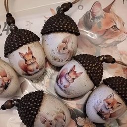 Совсем как настоящие, игрушечные жёлуди великолепно украсят ёлку в Новый год! Сделаны из яиц, бус, красок и распечатанных картинок, просты в изготовлении, долговечны. Вызывают только восхищение!