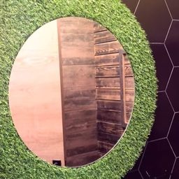 Красивое зеркало с зелёным обрамлением — имитацией травы — смотрится настолько роскошно, что даже не верится, будто бы его можно сделать своими руками не дороже, чем за 2000 рублей! Тем не менее, теория подтверждена практикой — оцените идею ниже!