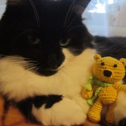 Для вязания этого забавного и очень доброго мишки вам понадобится немного пряжи (любого цвета) и крючок №№1,5-1,9.