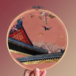 Очень красивая шёлковая вышивка с использованием китайской техники