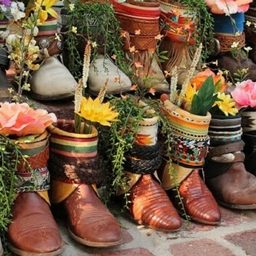 Цветочные кашпо из старых сумок и ботинок