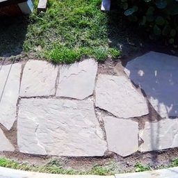 Дикий камень очень красивый и долговечный материал для мощения садовых дорожек, но, к сожалению, он существенно дороже бетонной плитки.
