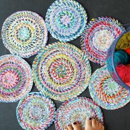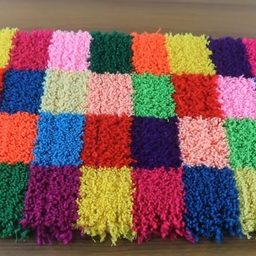 Этот декоративный коврик можно сделать из остатков старой пряжи.