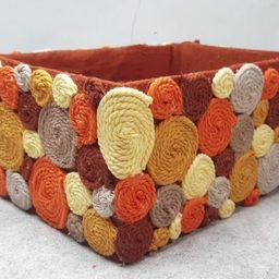 Корзинка для дома из коробки и пряжи
