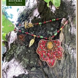 Приглашаю вас на мастер-класс по созданию кулона «Кленовый лист» из бисера и натуральных камней.