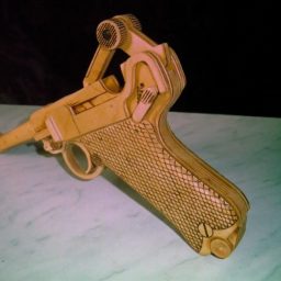 Самостоятельное изготовление игрушечного пистолета из фанеры. В главных ролях — фанера 8 и 4мм, в эпизодах — зубочистки, клей ПВА, палочка от леденца.