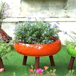 Если у вас имеются старые покрышки, приспособьте их на участке! Сделайте оригинальные вазоны на ножках. Смотрятся необычно и стильно! Настоящая красота для участка на бюджете.