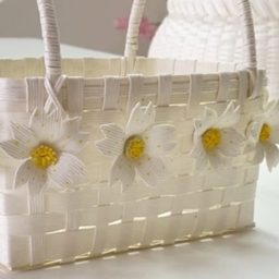 Такую милую корзинку легко можно сплести из ротанга или другого удобного и доступного материала — например, газетных трубочек, лозы, плотной бумаги, полос ткани с наполнителем и т. д. Работа очень лёгкая и приятная — от неё невозможно оторваться!