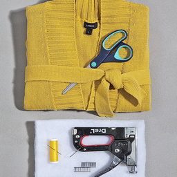 Пересматривая гардероб, не спешите избавляться от вышедших из моды или надоевших трикотажных вещей. Использовать их можно самым неожиданным способом. Взгляните на этот дизайнерский табурет. Сложно даже подумать, что оригинальная обивка раньше была невзрачным старым джемпером.