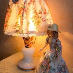 Старая лампа и коробка из-под чашки… превращаются… А превращаются они в комплект для украшения интерьера «Ночник и кукла-шкатулка» в стиле шебби шик, который я назвала «Нежность розы».