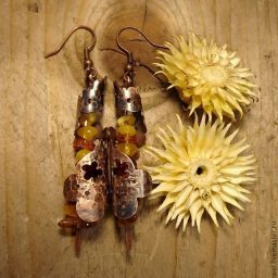 Я хотела бы рассказать вам о процессе создания медных длинных сережек с бусинками янтаря «Марокканские фонарики».